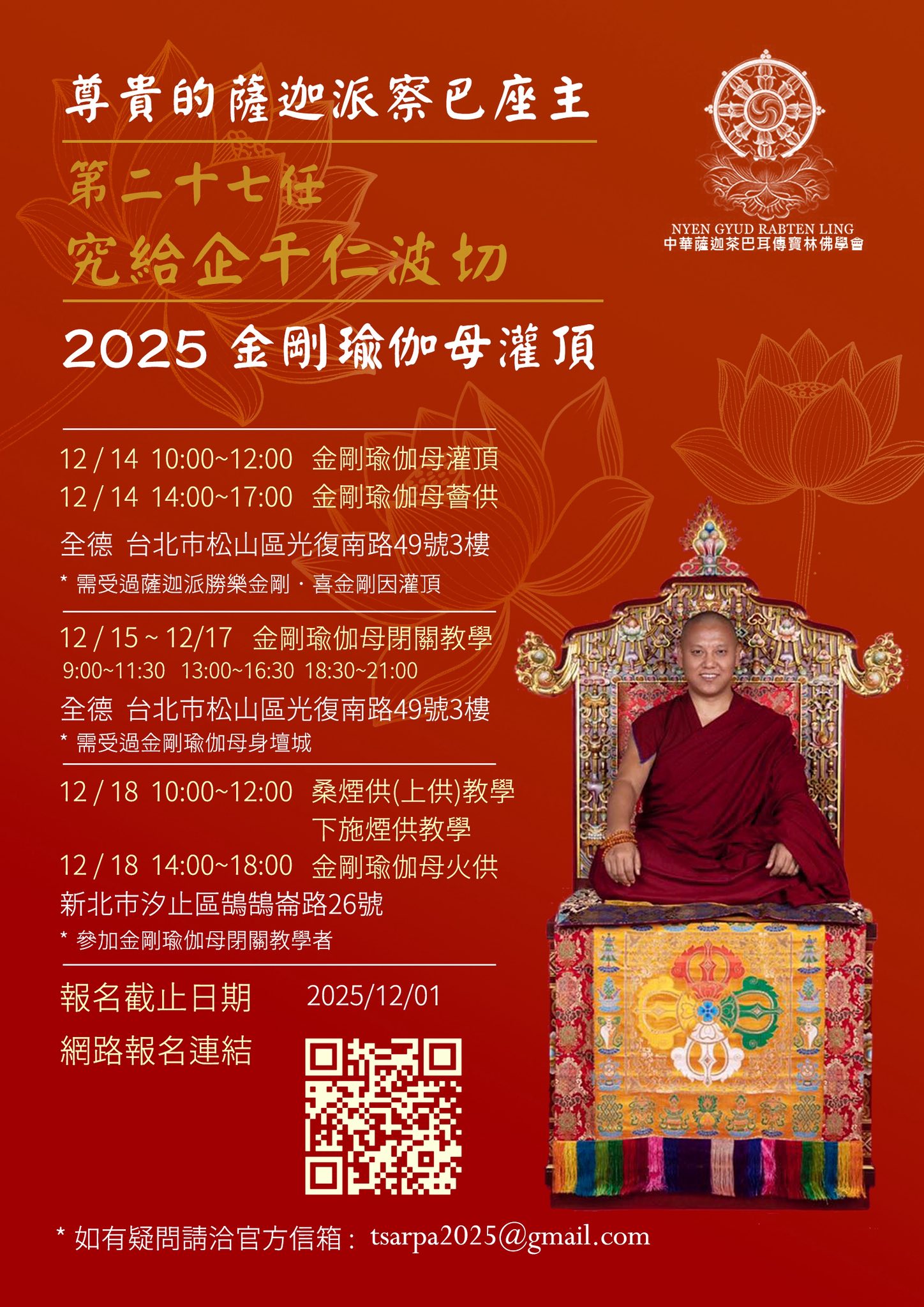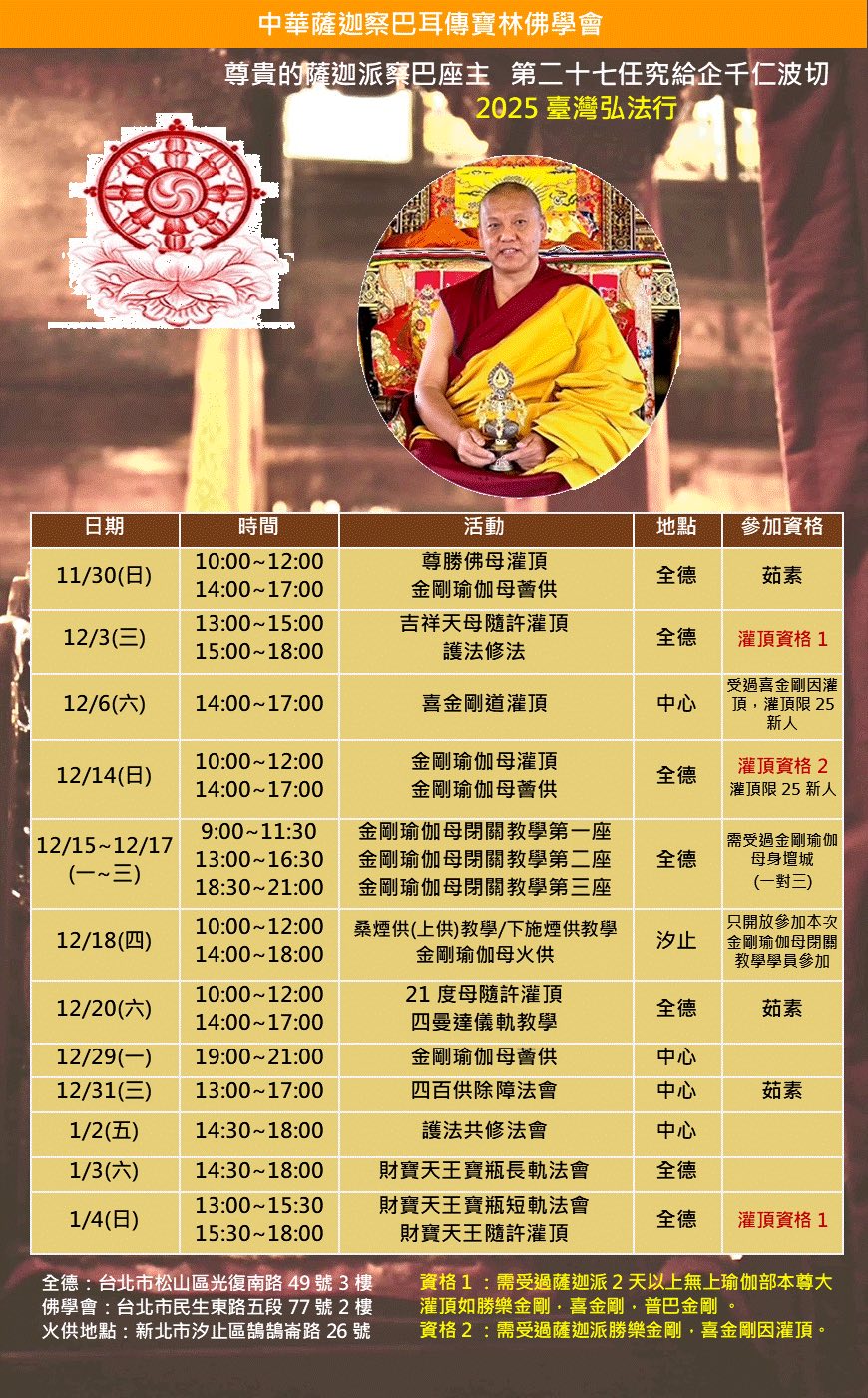 【參加資格】需受過薩迦派2天以上無上瑜伽部本尊