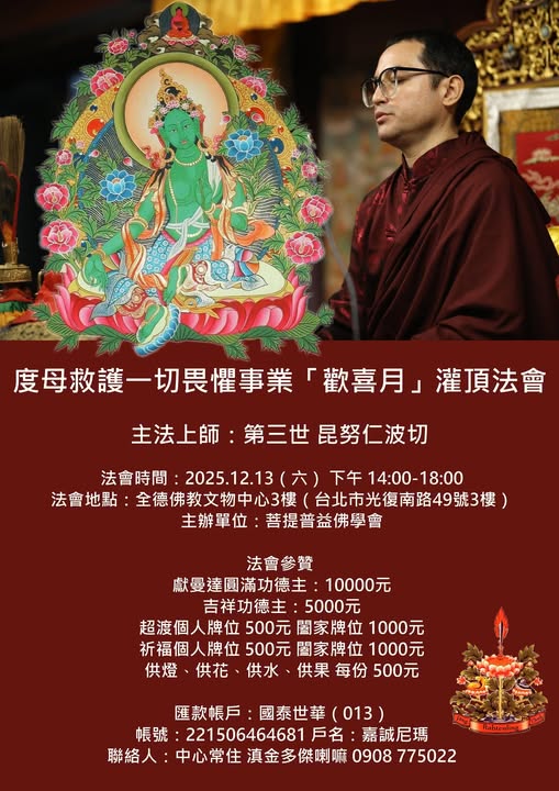 度母救護一切畏懼事業「歡喜月」灌頂法會