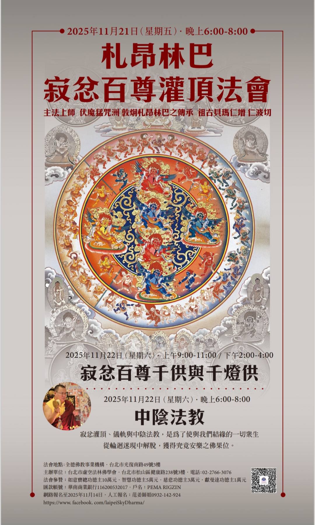 2025 第三世 敦烱札昂林巴 伏藏師 寂忿百尊灌頂法會