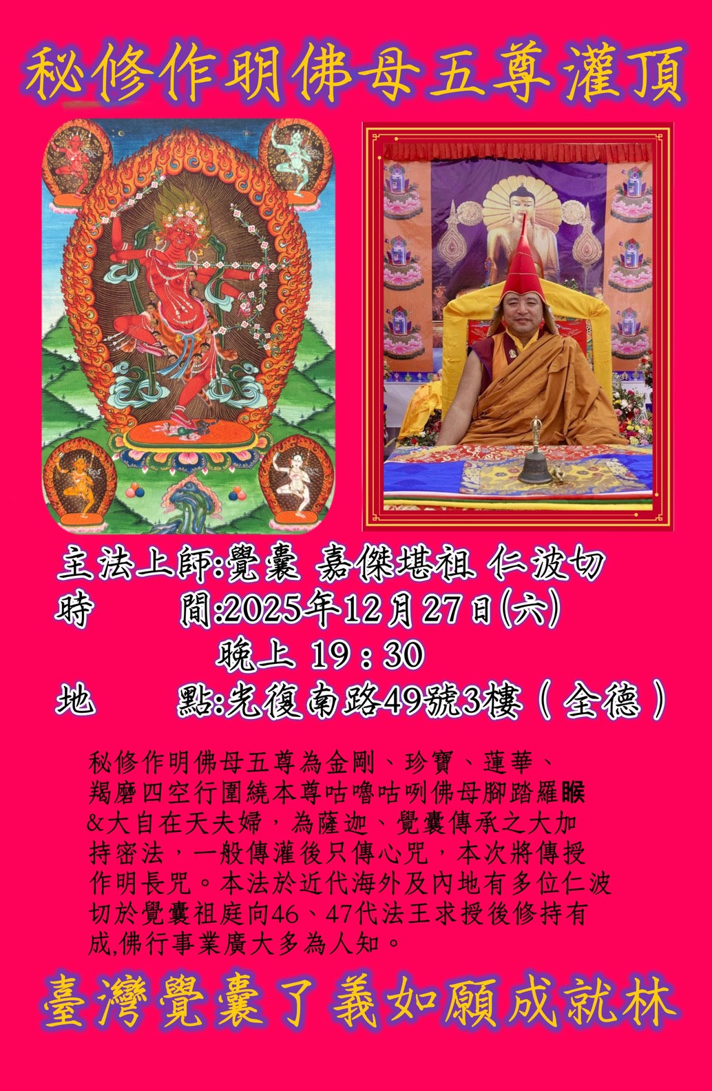 ■主辦單位:臺灣覺囊了義如願成就林協會