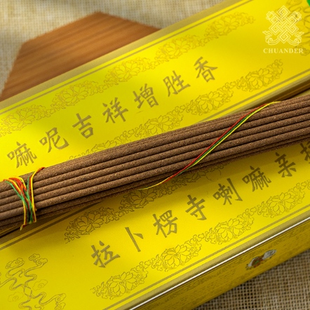 常燃此香,能使信眾病苦消除,六時吉祥。借大悲怙主之殊勝加持,能使信眾平安吉祥,所在之處龍天護法歡喜擁護,所做之事順利增勝。