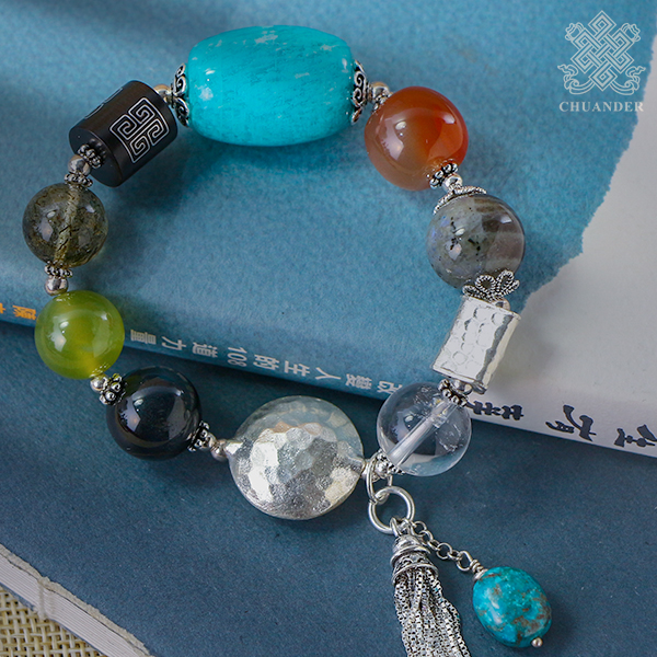 天河石、綠碧璽髮晶、岫玉、藍虎眼、拉長石、冰飄南紅、綠松石、925純銀