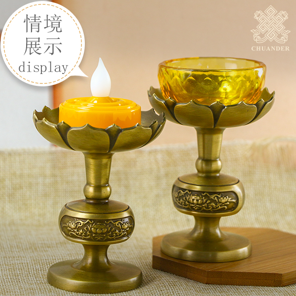 仿古銅燭台-蓮花高腳(一對)