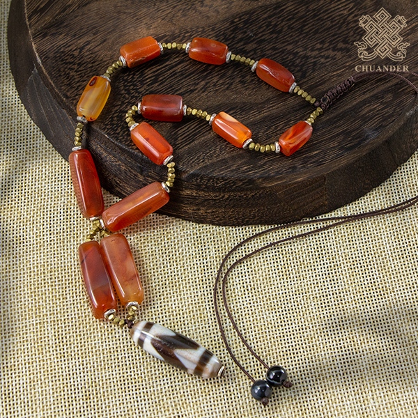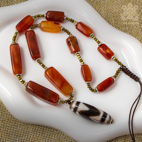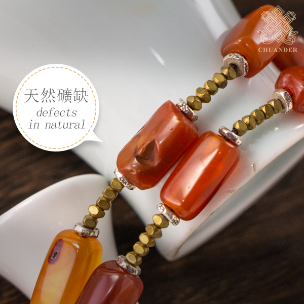 老玉髓柱(大小不同)寬約8~10mm、長約1.6~3cm,全長約50cm(可調整),由於丈量方式的不同,因此尺寸可能有2%以內之誤差。