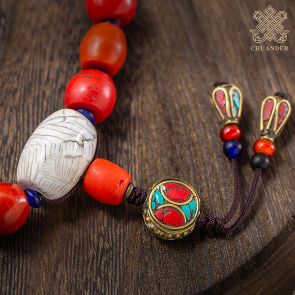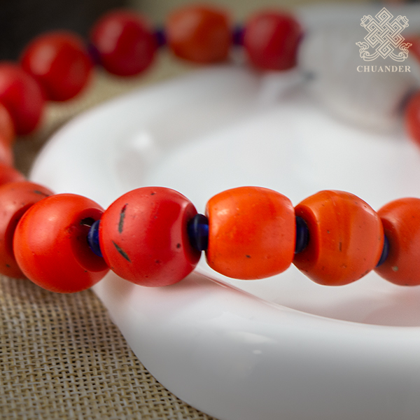 雪巴琉璃直徑約14~17mm,硨磲直徑約17mm、長約2.5cm,由於丈量方式的不同,因此尺寸可能有2%以內之誤差。