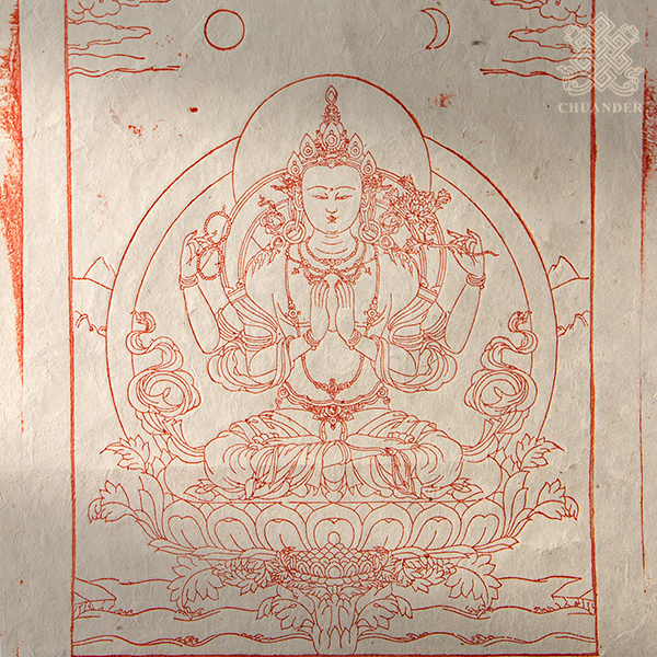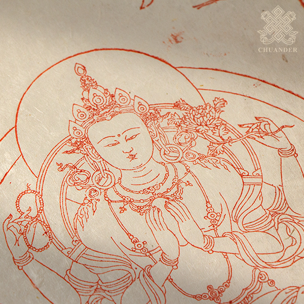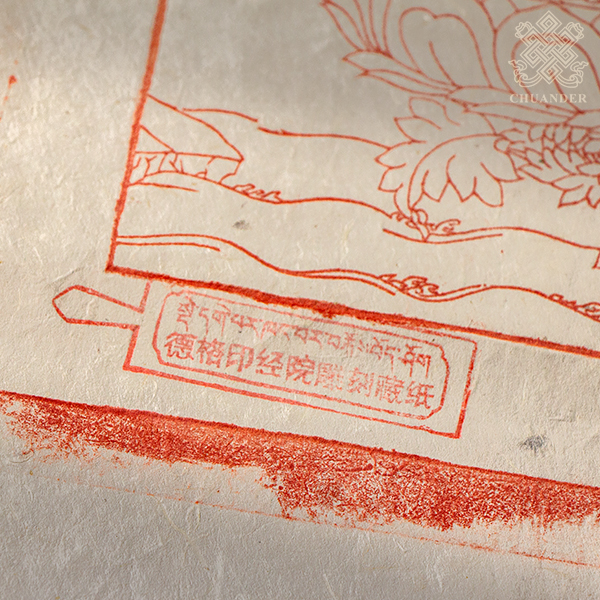 德格印經院版畫使用傳統手工藏紙所印製,此藏紙原料是產於藏地阿須草原上的狼毒草,其植物根莖微毒清熱,所造出的紙存放百年都不怕蟲蛀鼠咬。印製油墨為純天然礦物顏料,紙色溫和,能讓常年在昏暗油燈下閱經的喇嘛們因而清心明目,免受高原易罹患的眼疾之苦。