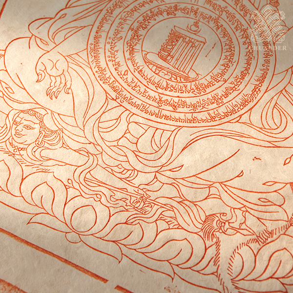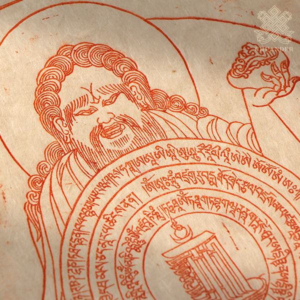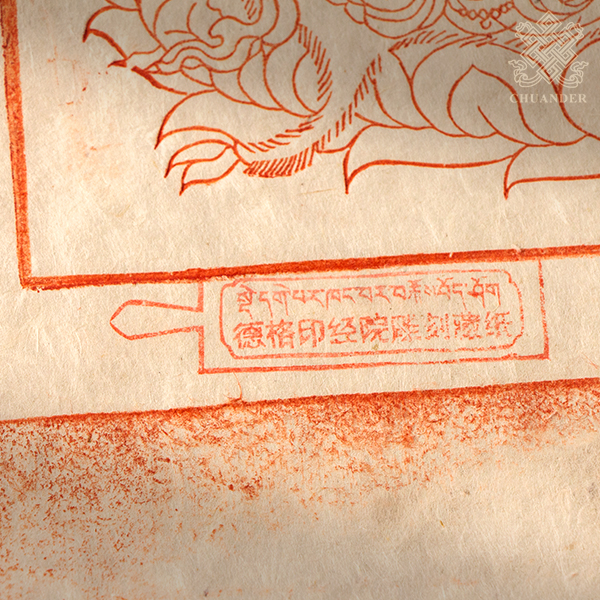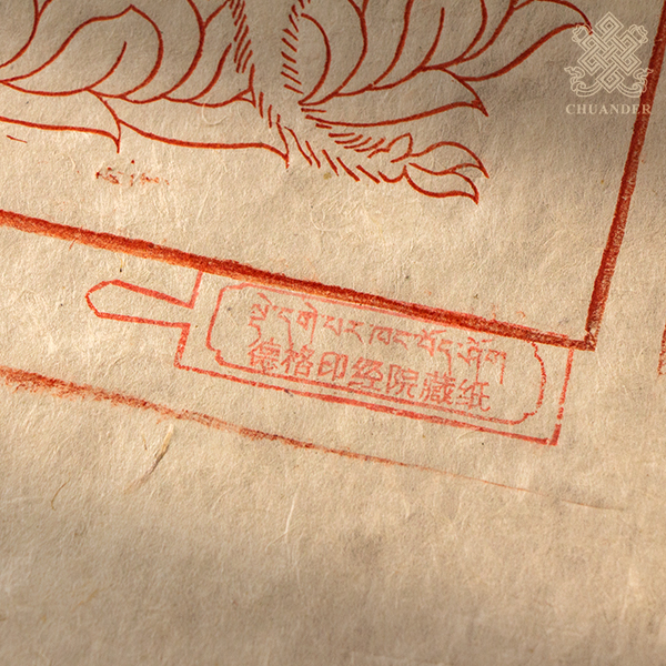 德格印經院版畫使用傳統手工藏紙所印製,此藏紙原料是產於藏地阿須草原上的狼毒草,其植物根莖微毒清熱,所造出的紙存放百年都不怕蟲蛀鼠咬。印製油墨為純天然礦物顏料,紙色溫和,能讓常年在昏暗油燈下閱經的喇嘛們因而清心明目,免受高原易罹患的眼疾之苦。