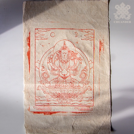 德格印經院版畫使用傳統手工藏紙所印製,此藏紙原料是產於藏地阿須草原上的狼毒草,其植物根莖微毒清熱,所造出的紙存放百年都不怕蟲蛀鼠咬。印製油墨為純天然礦物顏料,紙色溫和,能讓常年在昏暗油燈下閱經的喇嘛們因而清心明目,免受高原易罹患的眼疾之苦。