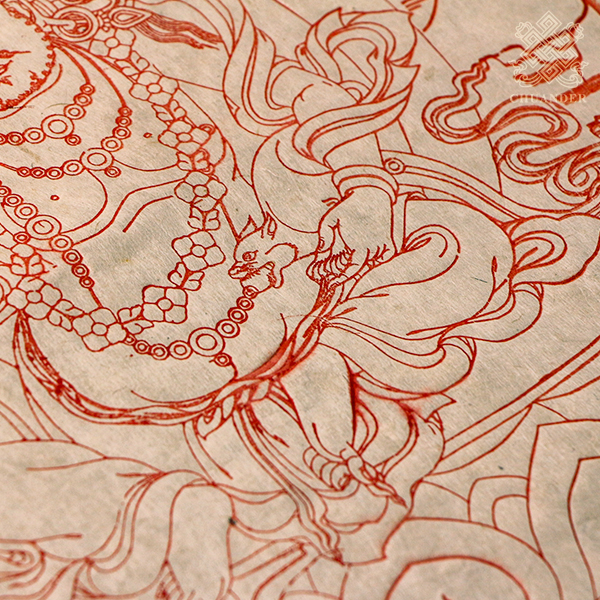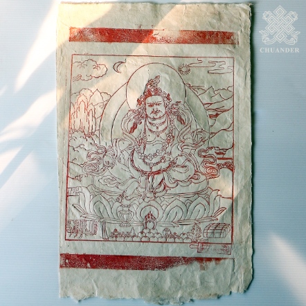 德格印經院版畫使用傳統手工藏紙所印製,此藏紙原料是產於藏地阿須草原上的狼毒草,其植物根莖微毒清熱,所造出的紙存放百年都不怕蟲蛀鼠咬。印製油墨為純天然礦物顏料,紙色溫和,能讓常年在昏暗油燈下閱經的喇嘛們因而清心明目,免受高原易罹患的眼疾之苦。