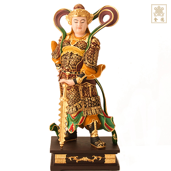 相傳佛陀入滅後.當諸天神和眾王共同商議欲建塔供養佛舍利時,突然出現了一個『捷疾鬼』偷走了佛牙。韋馱立即以健步如飛的速度.剎時便捉捕到捷疾鬼,取回佛牙。贏得諸天王的讚賞,此後,韋馱便擔當起祛除邪魔,保護佛法的重任。