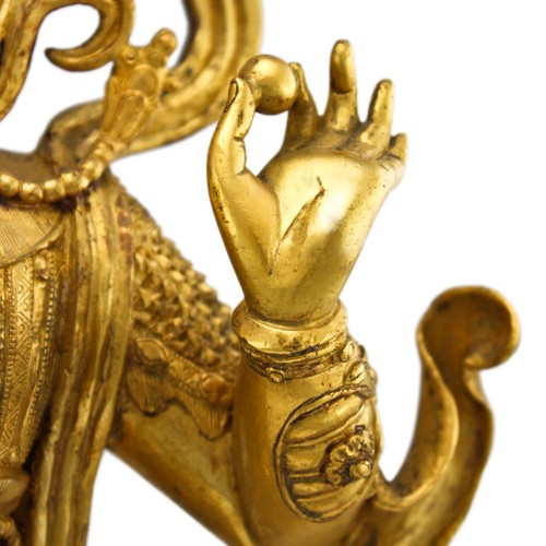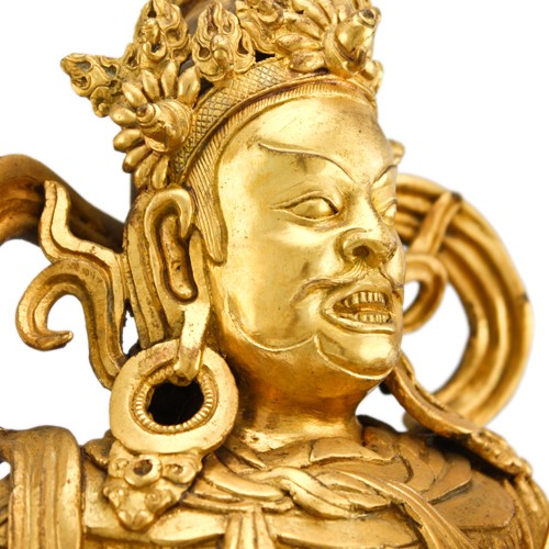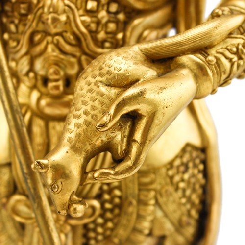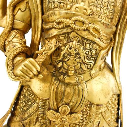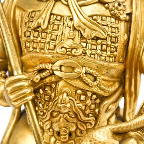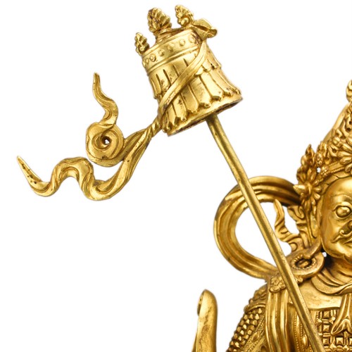 多聞天王又名毗沙門天王、財寶天王。為四大天王之一,居於須彌山北方,為北方之護方神。具大福德,為眾生財富之主宰。過去,釋迦牟尼佛示現涅槃時,多聞天王於佛前發願守護佛法,俾使正法長久住世。 本尊一面二臂身金黃色,頭繫珍寶璠帶,右手持寶幢、左手握吐寶鼠,坐於伏地白獅上。為天庫寶藏之主宰。能濟度學佛行者,使財富增長,免於貧困之障礙。