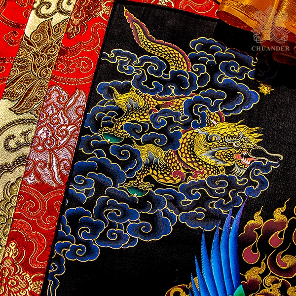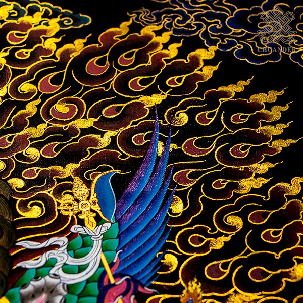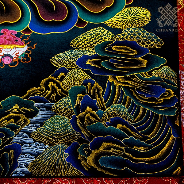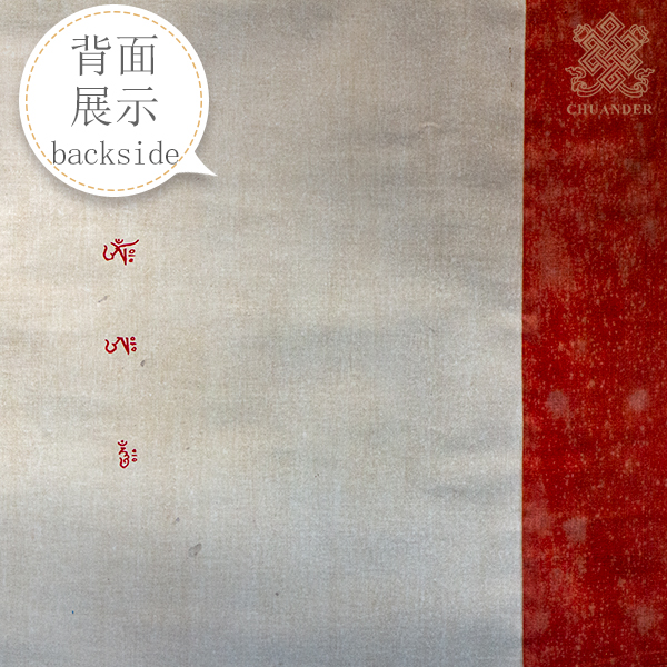 藏式蓮花布邊,軸心包邊處理。唐卡背面有受潮痕跡,如介意者請謹慎考慮是否請購,或重新縫布邊(價格另計)