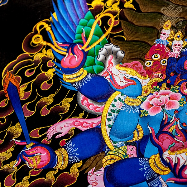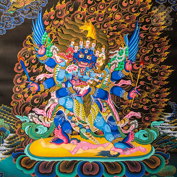 馬頭明王有多種化身,有單尊、雙身之分,雙身多為三面六臂,單身則有一面二臂、四臂和三面六臂,亦有帶金翅鳥翅膀者,此尊即此顯現。常見有深藍色或是紅色三面六臂形像,屬於無上瑜伽部本尊。