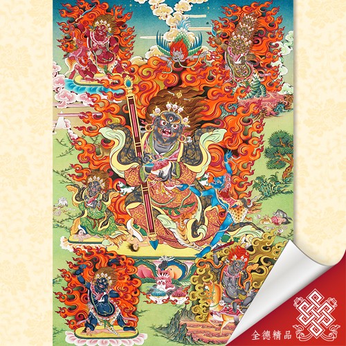 【手繪原畫唐卡】不動佛+四大天王-富貴花+金蔥布邊