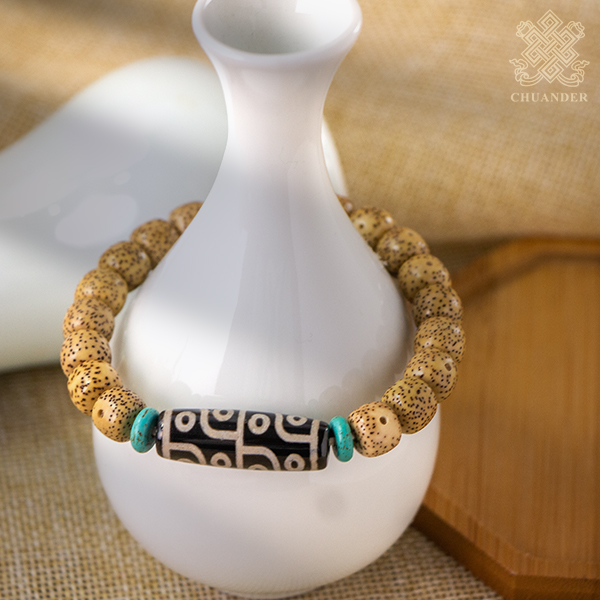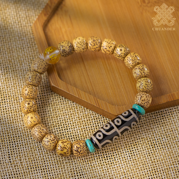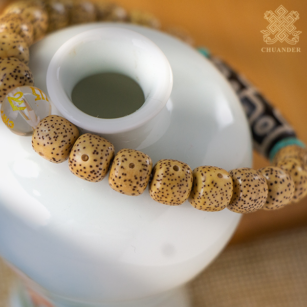 星月菩提,是黃藤的種子,由於每粒珠表面會分部密密麻麻小黑點,大的洞洞是芽眼,從表面看芽眼和小的點點形成了如眾星捧月,故而稱為星月菩提。星月菩提子佛珠不但有成就菩提的深刻含義,還有辟邪的作用,佩戴星月菩提子佛珠能增長智慧,去除煩惱。如果經常佩戴,星月菩提子的色澤和光滑度就會越來越高,顏色也會漸漸深沉,整體就會越發的漂亮,甚至「玉化」。