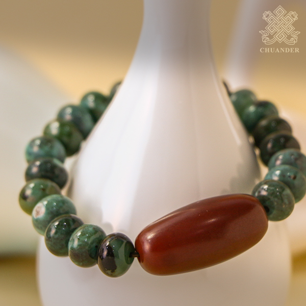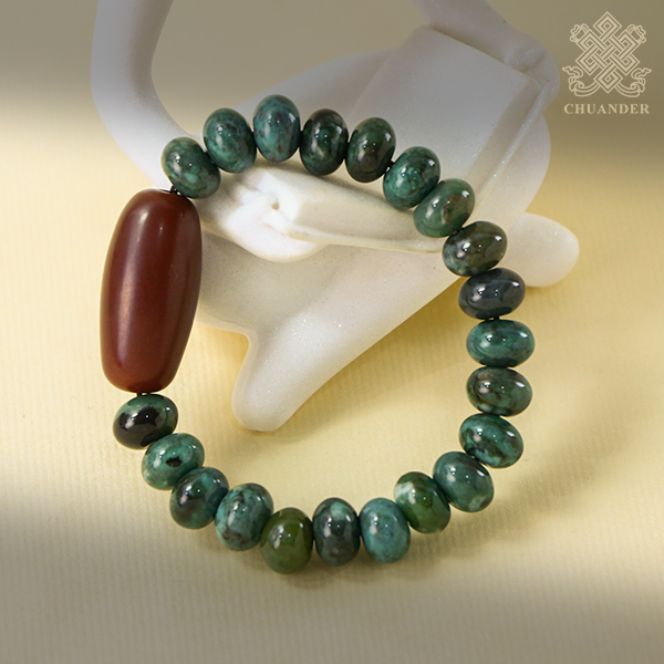 綠玉髓盤珠直徑約10mm、寬約6mm;紅玉髓直徑約1.5cm、長約3.2cm,手圍直徑約5.5cm(彈性線),由於丈量方式的不同,因此尺寸可能有2%以內之誤差。