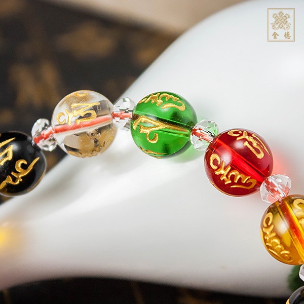 五行珠是由五種顏色綠(青)、紅、黃、白、黑的水晶珠所組成,其相對應五行中木、火、土、金、水 等元素。
