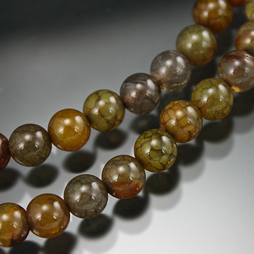 龍鱗天珠採用天然瑪瑙經過高溫密閉燒製而產生不同的顏色與產生自然的裂紋。