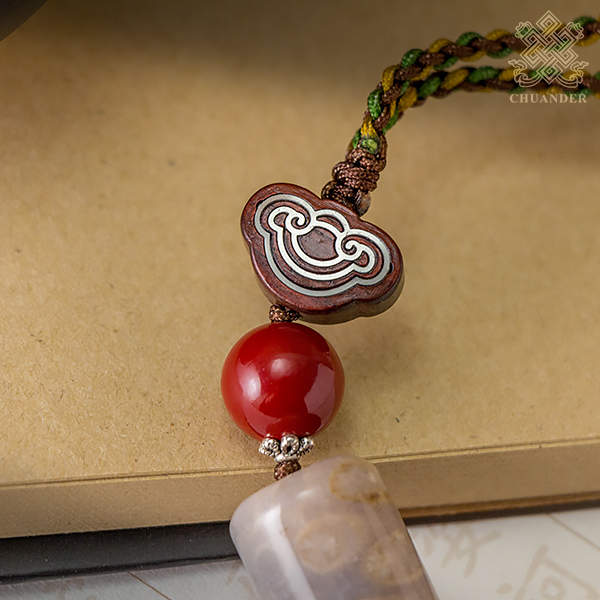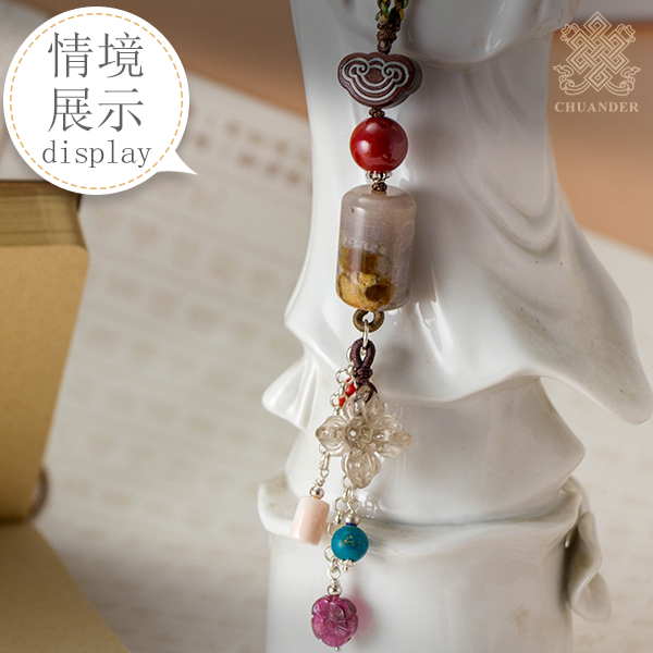 珊瑚玉筒珠直徑約16mm、長約2.5cm,掛飾全長約23cm,由於丈量方式的不同,因此尺寸可能有2%以內之誤差。