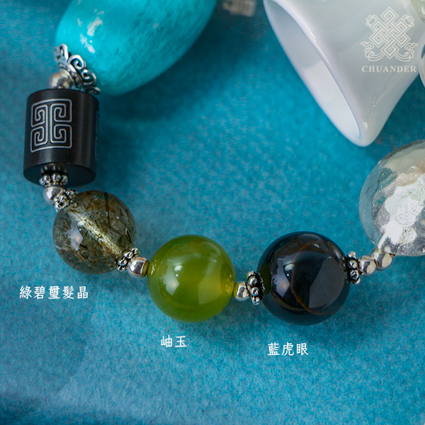 天河石、綠碧璽髮晶、岫玉、藍虎眼、拉長石、冰飄南紅、綠松石、925純銀
