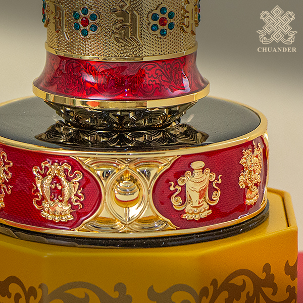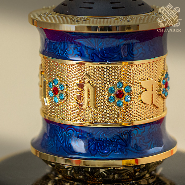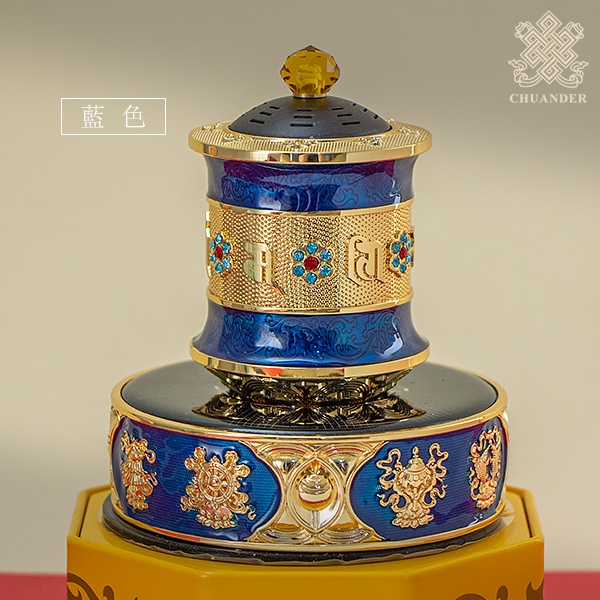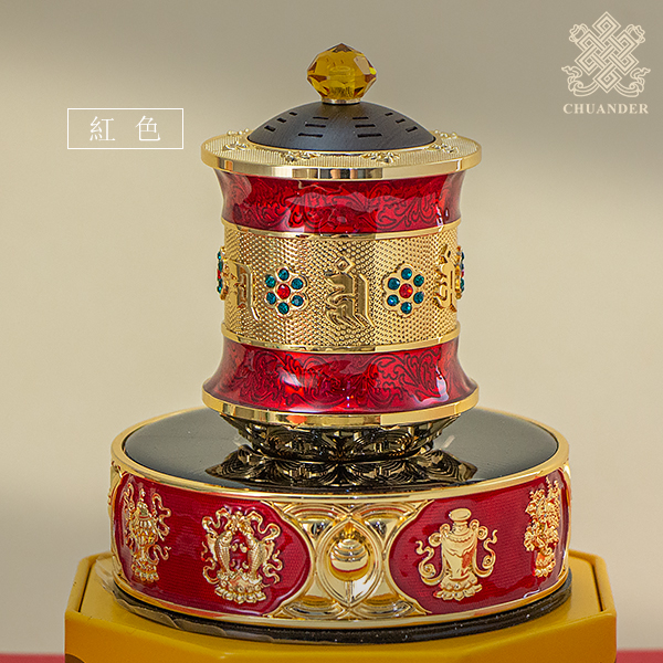太陽能電動轉經輪-六字+八吉祥-琺瑯彩鑲鑽(共三色)