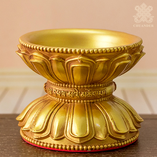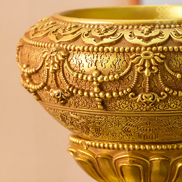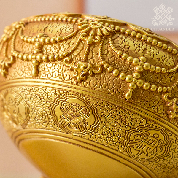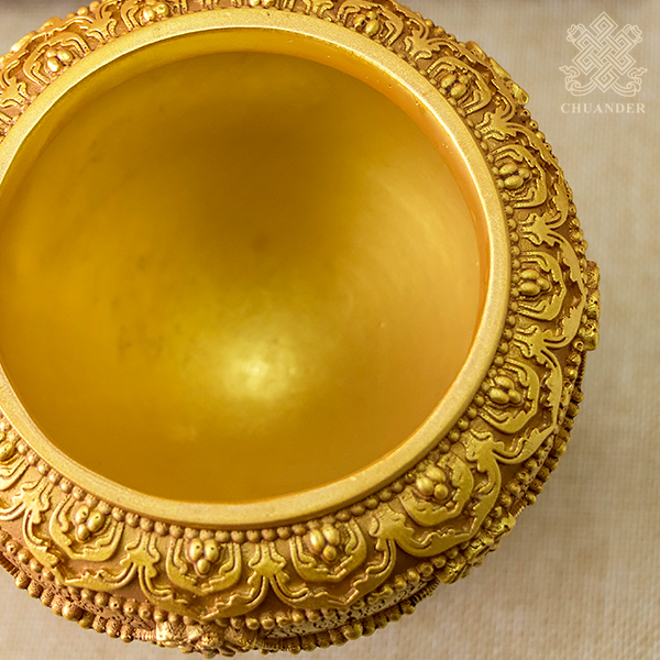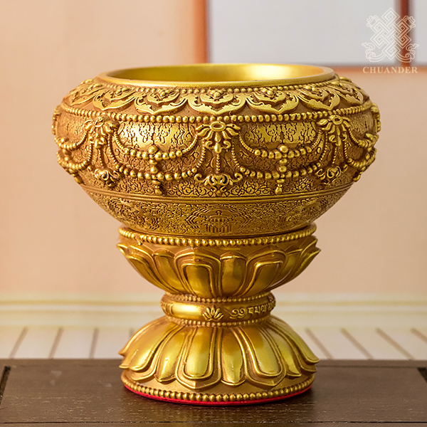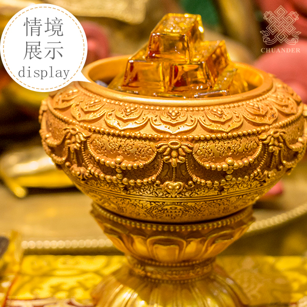 本件缽型供器,可將佛家七寶(紅玉髓、蜜蠟、硨渠、珍珠、珊瑚、金、銀)放置缽內,發恭敬心在佛前供奉,以此緣起表法,累積福德資糧。