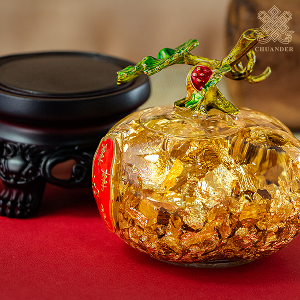 「黃金」,是佛教七寶之一,代表富貴吉祥、招財納福。黃金水可用至於八供,供養諸佛菩薩飲用與盥洗,究竟上,能使供養之眾生消除口渴之苦,證得清淨之身,消除修行障礙。
