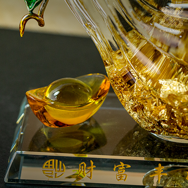 「黃金」,是佛教七寶之一,代表富貴吉祥、招財納福。黃金水可用至於八供,供養諸佛菩薩飲用與盥洗,究竟上,能使供養之眾生消除口渴之苦,證得清淨之身,消除修行障礙。