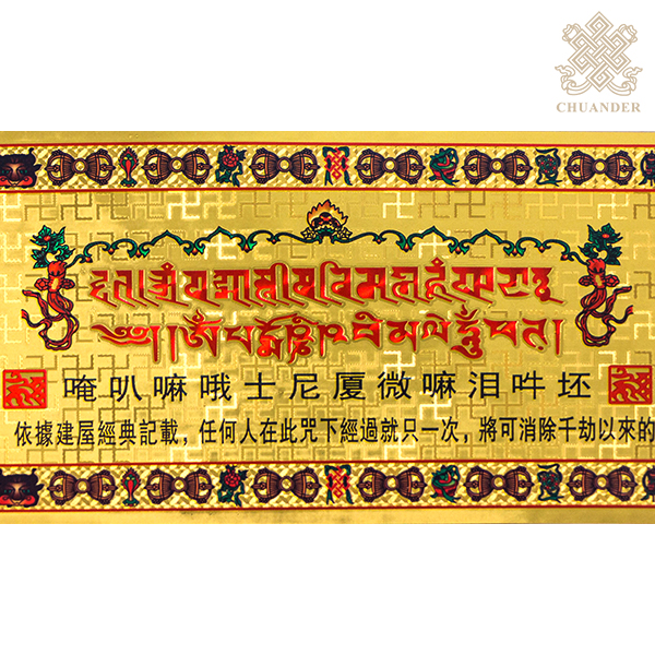 此咒為什麼會被稱為過門咒呢?《地藏十輪經》中記載:把這個咒置於門楣上,凡是從它下面走過的人,都會得到淨化,不會墮惡趣,又能獲得無上威力的加持,淨除千劫所積累的罪業,保佑家人出入平安。《建屋經》中也有同樣的描述:如果我們能將此咒高懸於門框之上,或行人所經過的高處,凡人從此咒下經過一次,就能得到無上威神加持,可消除千劫以來的業障,並能化解兩門相對等一切大門風水煞氣,帶來平安好運。