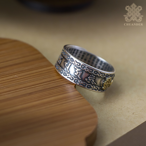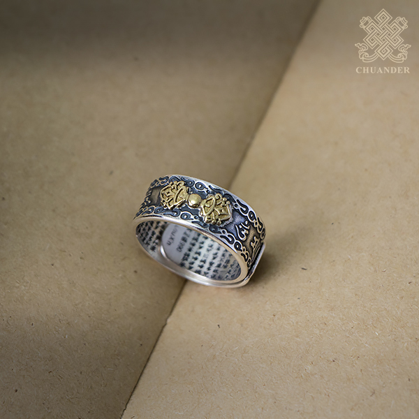 戒指正面刻金剛杵,內緣刻「心經」