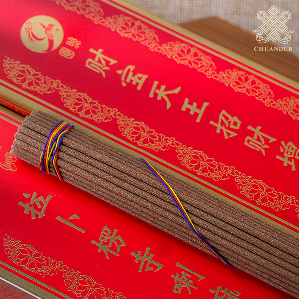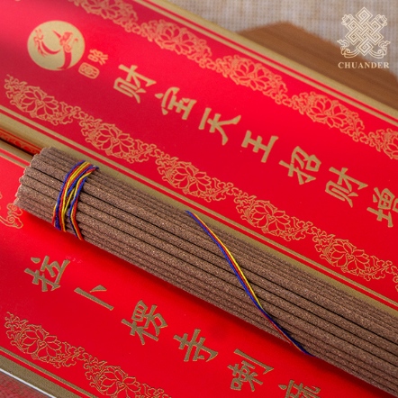財寶天王,梵名毗沙門,是多寶如來的化身。臧巴拉等財神皆為其眷屬,協助天王滿眾生願,救度眾生。財寶天王職掌人間功德福報轉化,散發財富,護持佛法並消除魔障,是人們求財祈福的重要怙主。財寶天王招財增益香在製作過程中特別添加了召請財神及眷屬部眾的殊勝法藥,其中包括令財寶天王歡喜的乳香、荳蔻、蜂蜜、芝麻、蓮芯、沉香、五聖藥等原料,經漢藏高僧指導精心配製而成。以恭敬心常燃此香,能獲得財寶天王的加持護祐,可使事業順利、鴻圖大展、求財滿願,快速相應。