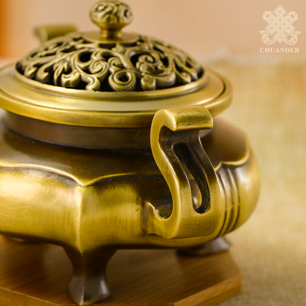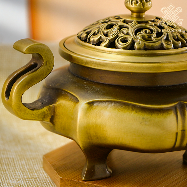 仿古三足銅爐-獸面紋-鏤空纏枝蓮麒麟上蓋