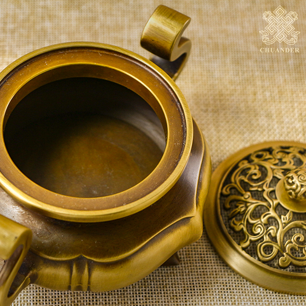 仿古銅爐-三瓣花型-雙曲耳-鏤空纏枝紋上蓋