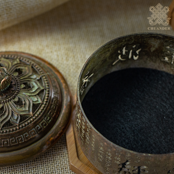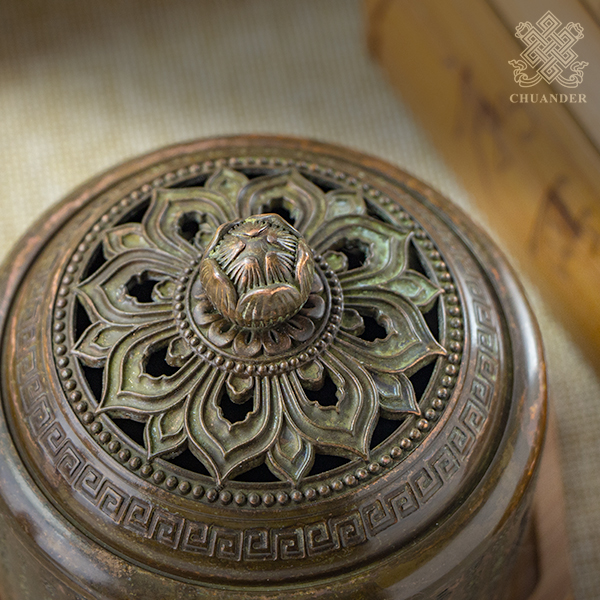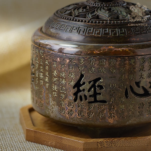 心經圓形鏤空香爐蓮花蓋-仿古色