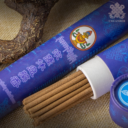 遵循諸位先輩之傳統和藏醫學規範,依照欽則、工珠二位文殊怙主以及局米旁等大師的實踐傳承,選用對身心安全無害的天然藥材,如法配製加工而成此休息藥香,凡其香氣所至的一切處所,皆得智慧增上、壽命增長、資財增盛、身體康泰、心情愉悅、恬適安詳,盡皆防護邪煞、不淨、諸病、疫癘等,尤可避免夜不安寢,可防護無形之害,更是令三根本歡喜的上佳供養物。