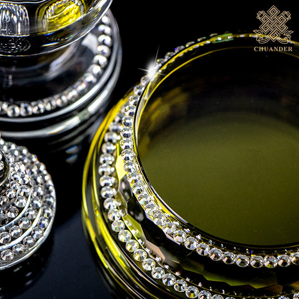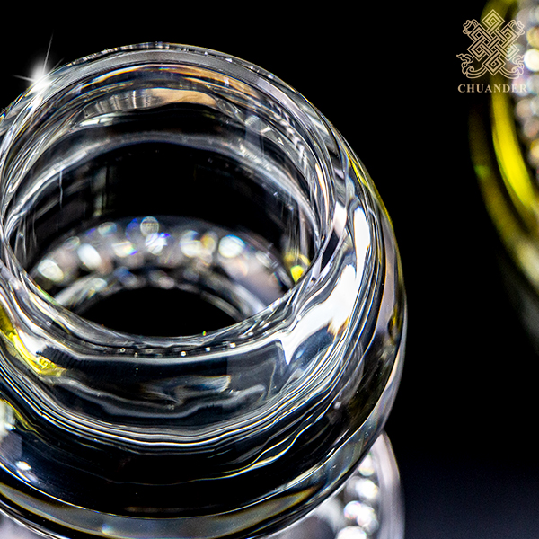 - 大─舍利塔本體直徑約8cm、高約19cm(含蓋),內徑約5cm、深約4.5cm; 底座直徑約13cm、高約5cm,由於丈量方式的不同,因此尺寸可能有2%以內之誤差。