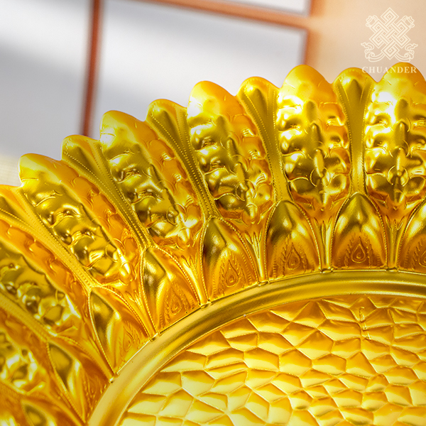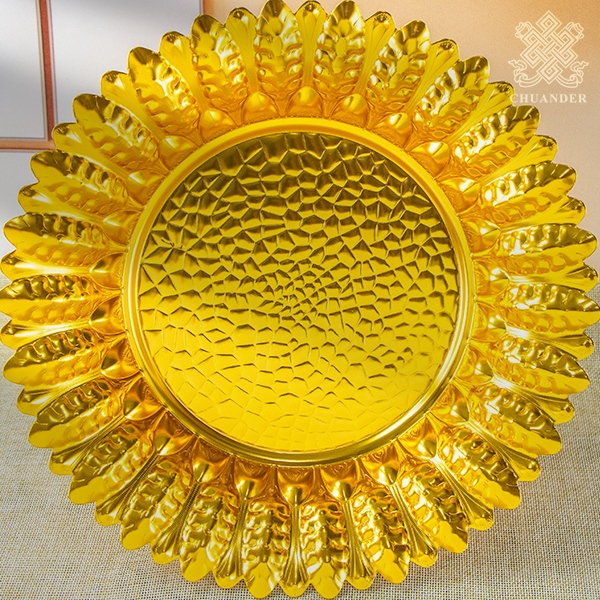 盤面浮雕龍鱗紋,盤緣浮雕葉紋