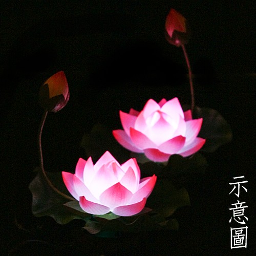 蓮花燈採漸變色,蓮花出污泥而不染的美德,象徵寧靜無染的超凡境界。