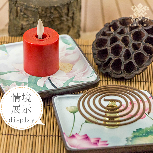 多功能小方盤,可當小燭台、杯托使用。搭配香夾、香架亦可當小香盤。