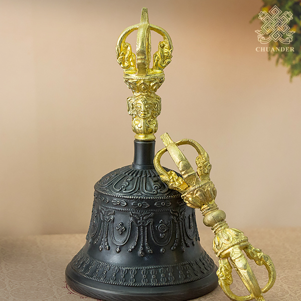 五鈷鈴杵-銅黑色-鎏金頭-4寸