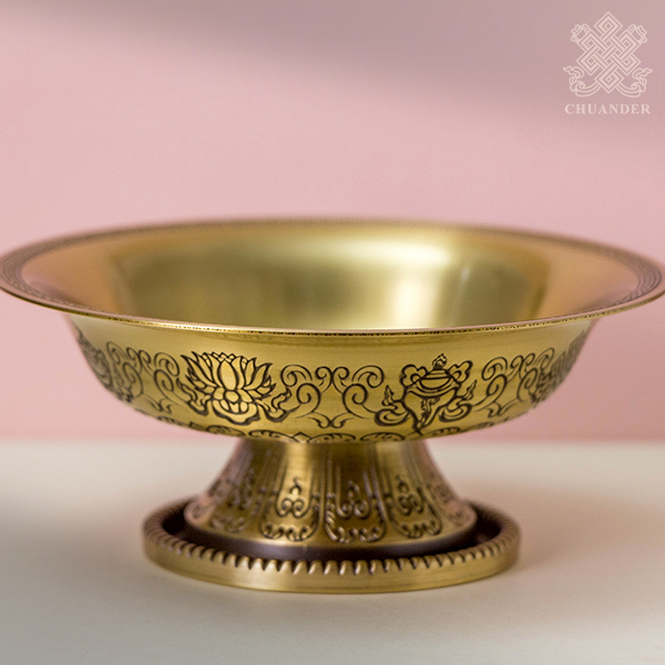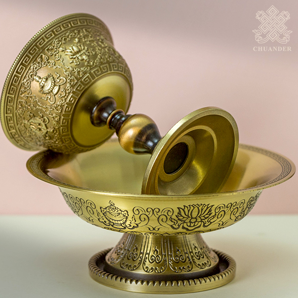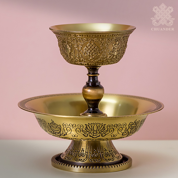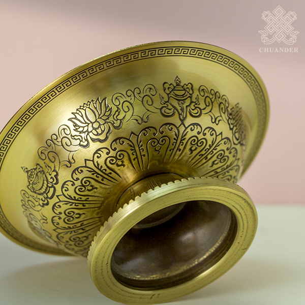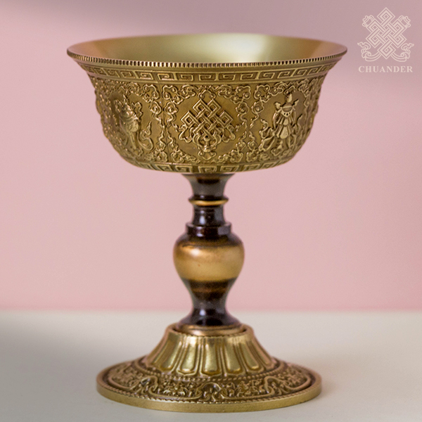 上杯外緣立體精雕八吉祥,下盤外緣刻八吉祥