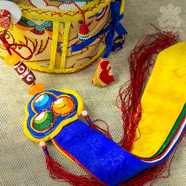 握器上半部的手柄有時是用海螺殼的某一部分製成,代表著「語」。鼓本身代表「身」,絲製短帷(飄帶)尾巴代表「意」。