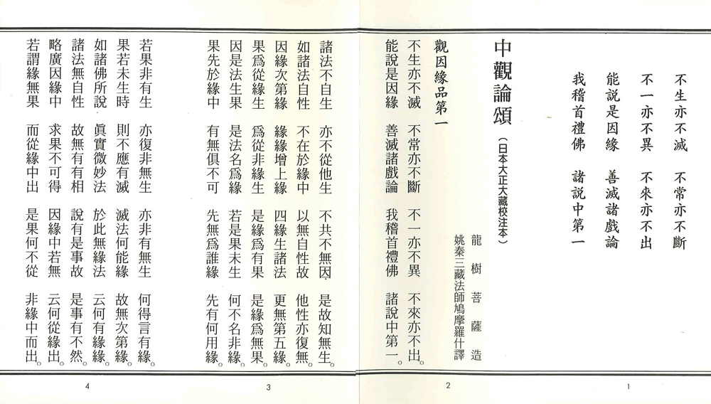 《中觀論頌》簡稱為《中論》,是龍樹菩薩的代表作。本書問世已經千餘年,不但是印度學術界、中國佛教、西藏佛教的主流思想,當代歐、美、日佛教界對於本書的研究依舊方興未艾,各種研究作品不斷推陳出新當中。