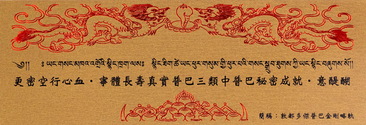 本軌以短軌形式,提供獲得本法灌頂、遵守三昧耶,持為本尊,日日修持不輟者作為日課所用,並以精要方式涵蓋普巴「出塵四法」,將有相生起次第、無相圓滿次第,以口授提點方式明白托出,言簡意賅薈萃要訣之珍本。