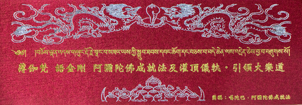 本法是寧瑪噶陀派開宗祖師唐巴德謝,得阿彌陀佛親授此依據密咒摩訶瑜伽理趣修持之成就法,曾親口允諾對持有傳承、善緣敬信者悉皆接引至淨土,由噶陀派傳承漸次廣傳至今,是同時具有彌陀親授、本智流露、祖師印可、傳承加持,能成辦長壽、智慧、往生淨土、究竟成佛之世出世間無量利樂難得珍貴法寶。