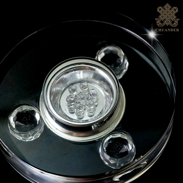 適合擺放玻璃、水晶等飾品。會七彩變色,附100~240V插座1個、USB電源線1條。商品出貨不含舍利塔。