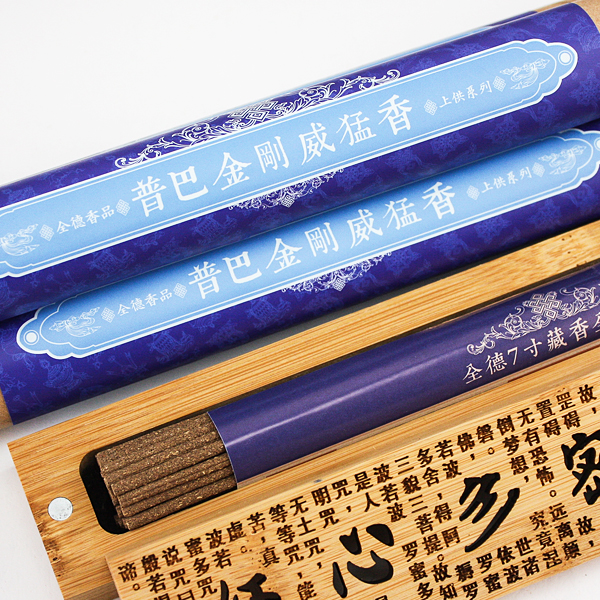 以雪柏、月桂、青皮...等天然香料,配入三白(酪、乳、酥油)三甜(紅糖、冰糖、蜂蜜)和普巴金剛甘露製作而成。深具信心且如法修持普巴金剛法門獲成就者可得:吉祥、長壽、無病、權勢、富有、聞名之功德利益。