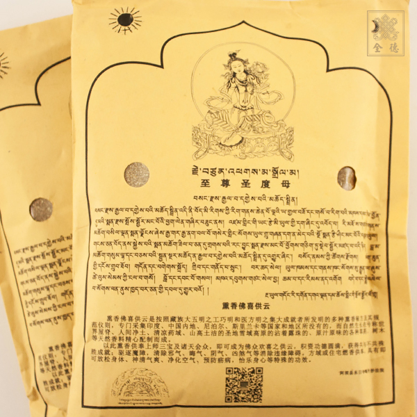 本系列香粉皆由西藏阿壩東日寺噶丹妙法院喇嘛親製,並依循古法製作並修法加持。採集中國、印度、尼泊爾、斯里蘭卡等珍貴藥材製作,純天然成分。本藏香為供奉諸佛之上香,具有積德資糧、避邪、去除穢氣等功效,亦可淨化空氣、放鬆身心。