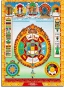 正中分為三圈,外圈是十二生肖圖,中圈有八卦,內圈則是九宮圖。圈外有一怒目獠牙捲舌的四手凶神,就是掌理日月星宿、年月日的羅睺,俗稱太歲星宿。右下方是韻母與緣起咒,左下方則為遮止咒輪。