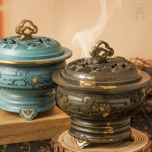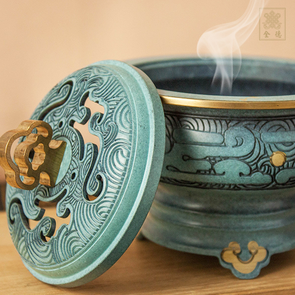 供養佛菩薩的供品中,可分為:香、花、燈、涂(水)、果、茶、食、寶、珠、衣十種,而香在十供養之首,可見供香之重要,香爐的身份自然也高起來了。香有淨化之作用,在供香之前,最好能夠先洗手淨身,收攝身口意,供奉好香能去除雜念而使精神集中,故焚香能除不潔淨障。專注觀想諸佛菩薩前來接受種種供養時,觀想真切,虔誠信心生起,方能與諸佛感應道交,足見修行日課之質量。